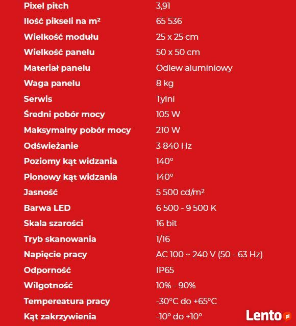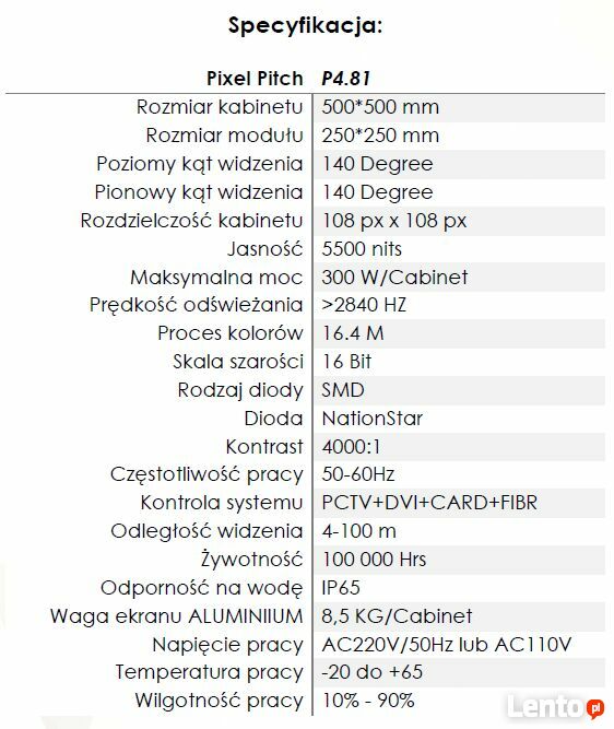 Parametry techniczne ekranu LED P4 oraz P3 znajdują Państwo na dostępnych zdjęciach